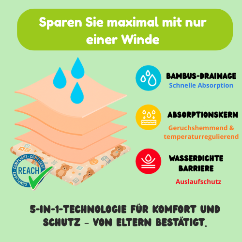 Hypoallergener, atmungsaktiver Bambus – schnell saugend, leicht feucht.