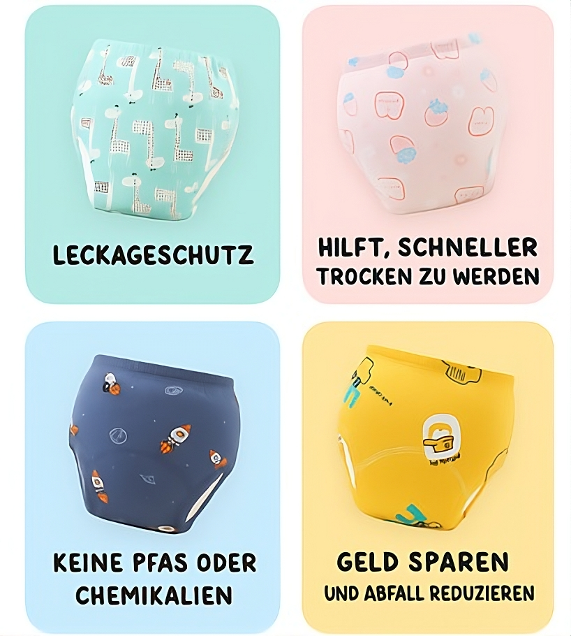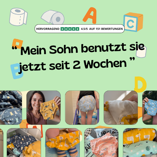 Trainingshosen sind wiederverwendbare Unterwäsche, die Kindern den Übergang von Windeln zu normaler Unterwäsche erleichtert. Sie bieten saugfähigen Schutz bei Unfällen und geben dem Kind gleichzeitig mehr Unabhängigkeit.