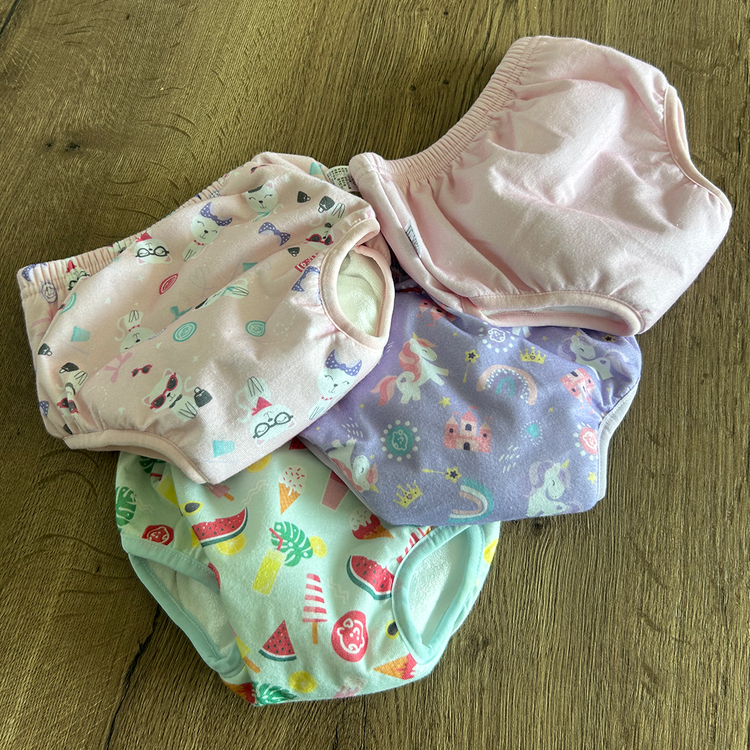 Im Gegensatz zu Windeln sind Trainingshosen wiederverwendbar und nicht zum Wegwerfen bestimmt. Sie sehen aus wie Unterwäsche und sind gleichzeitig saugfähig, um kleinere Unfälle aufzufangen.